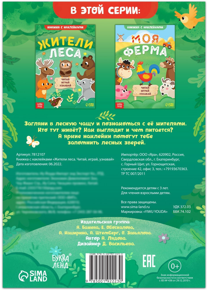 Жители леса. Читай, играй, узнавайВ данный момент этот товар отсутствует в продаже. Возможно, у нас найдется аналогичный или похожий товар здесь. Серия: Книжки с наклейками Яркая книга с наклейками познакомит малыша со зверушками. Изучать мир животных с такой игрушкой будет весело и интересно! Каждая страничка книги посвящена своему герою. Читайте историю про лесного зверя, выполняйте задания и узнавайте больше о животных. Наклейки находятся на отдельном листе. Выполнение заданий со стикерами тренирует сообразительность, аккуратность, развивает пространственное мышление и координацию движений, расширяет кругозор и помогает весело провести время. |