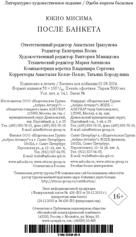 Серия: Азбука-классика (pocket-book) Немолодая, роскошная, независимая и непосредственная Кадзу, хозяйка ресторана, куда ходят политики-консерваторы, влюбляется в стареющего бывшего дипломата Ногути, утонченного сторонника реформ, и становится его женой. Что может пойти не так? Если бывший дипломат возвращается в политику, вняв призывам не самой популярной партии, — примерно всё. Неразборчивость в средствах против моральной чистоты, верность мужу против верности принципам — когда политическое оборачивается личным, семья превращается в поле битвы, жертвой рискует стать любовь, а угроза потери независимости может оказаться страшнее грядущего одиночества.