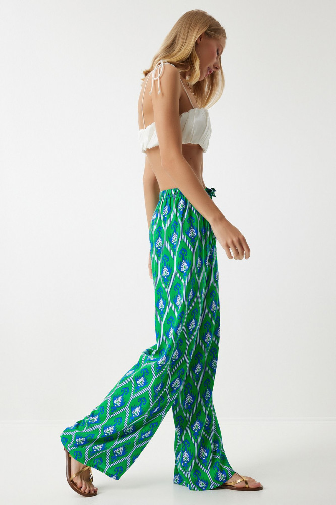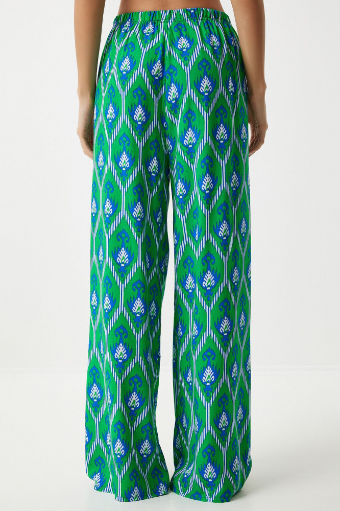 Отличные штапельные брюки, не просвечивают, производитель учел, Производитель учел, что штапель садится при стирке и поэтому длина и ширина брюк вначале немного больше, а после стирки всё становится идеально по размеру. Ткань осталась яркой. Советую.