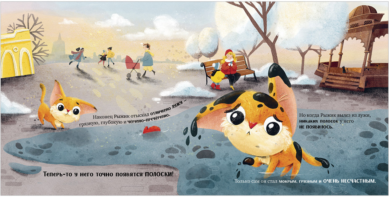 Жил-был на свете котенок Рыжик. И не было у него совсем никого, кроме пушистого друга — тигренка Мурзика из зоопарка. И даже своего угла не было. А ведь каждому котенку важно, чтобы его кормили, любили и заботились о нем! Однажды накануне Нового года решили друзья, что Рыжику надо стать тигром и в зоопарк устроиться. Только сперва нужно раздобыть где-то тигриные полоски... Какие приключения ждут Рыжика на пути к мечте?