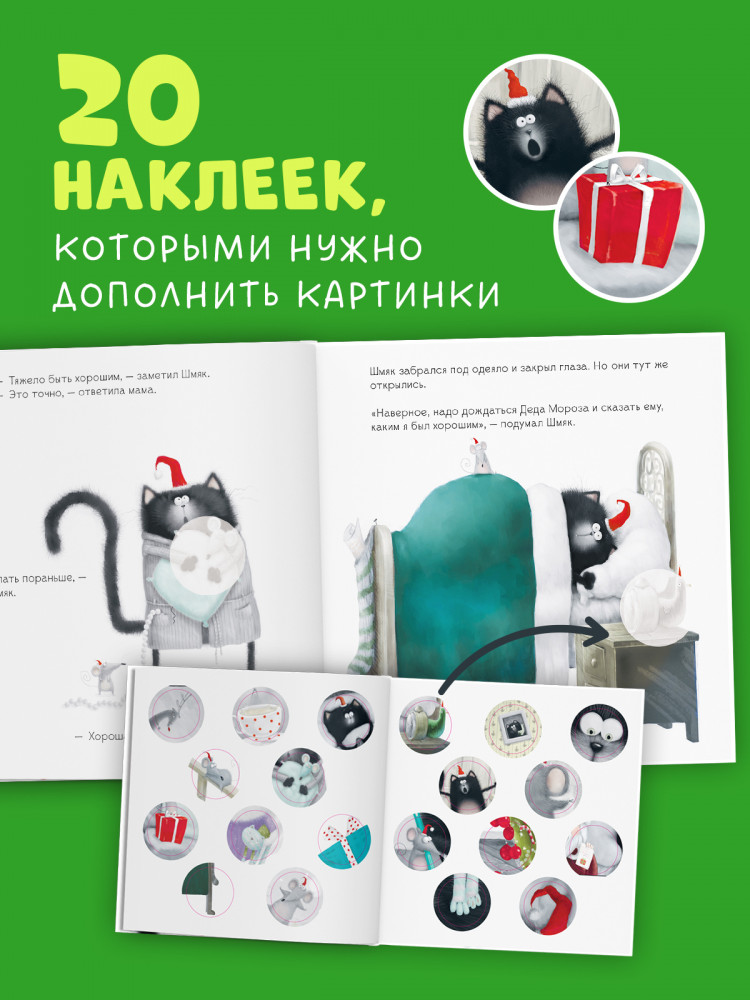 В данный момент этот товар отсутствует в продаже. Возможно, у нас найдется аналогичный или похожий товар здесь. Серия: Книжки-картинки с наклейками «С Новым годом, Шмяк! Книжка с наклейками» — смешная книга про всеми любимого котенка в новом интерактивном формате.