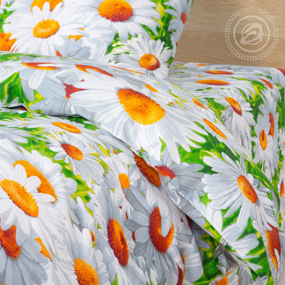 Комплект постельного белья Офелия — яркое поле красочных бело-желтых ромашек. Эти лучезарные цветы настраивают на позитивный лад, создают легкость и непринужденность, помогают быстрее заснуть. Будьте уверены, вам будут видеться лишь добрые и сказочные сюжеты. В состав входит натуральный материал, приятный на ощупь. В такой кроватке будет приятно засыпать и просыпаться.