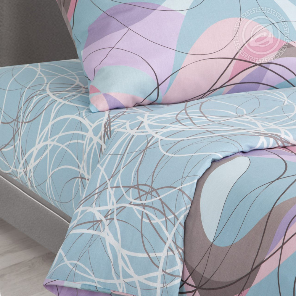 Постельное белье из бязи с модной абстракцией олицетворяет нежность и элегантность. Изящный принт с причудливыми завитками и в пастельной палитре по своей красоте соотносится с плавной мелодией вальса, которая дарит ощущение легкости и мечтательности. «Вальс» — это изысканный минимализм для облика спальни.