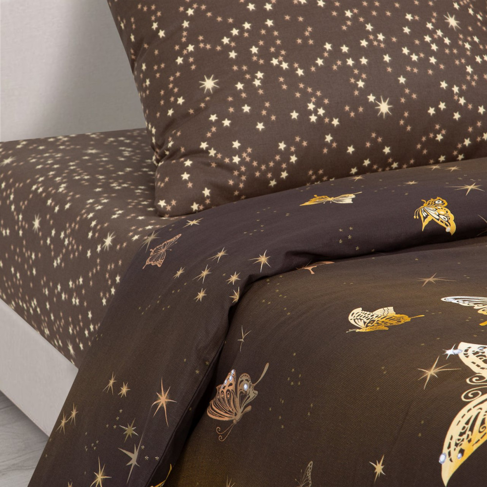 «Инфинити» напоминает чудесное сновидение, которое наполнено необыкновенным волшебством. Ночное небо усыпано золотыми и сверкающими звездами, а среди сказочных цветов порхают бабочки с блестящими крыльями. Постельное белье из практичной бязи с элегантным дизайном создаст в спальне атмосферу легкости и гармонии.