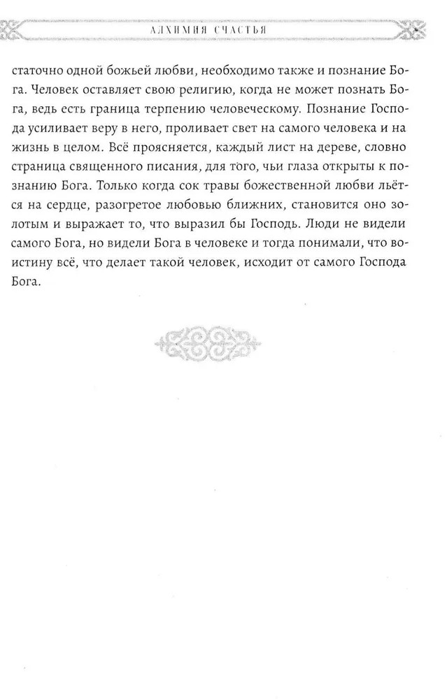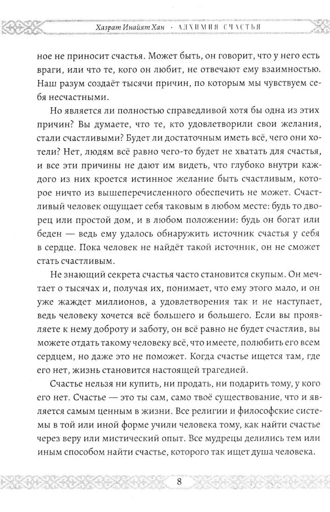 Алхимия счастьяВ данный момент этот товар отсутствует в продаже. Возможно, у нас найдется аналогичный или похожий товар здесь. «Алхимия счастья» — это произведение известного индийского музыканта, философа и суфия Хазрата Инайят Хана (1882–1927), посвящённое способам достижения счастья. Автор утверждает, что есть незыблемые духовные принципы, следование которым делает человека счастливым. В книге затронуто довольно большое количество тем. Это цель жизни человека и его предназначение, развитие личности, самопознание, осознанность, ответственное и многие другие. Для широкого круга читателей, идущих путём духовного развития. |