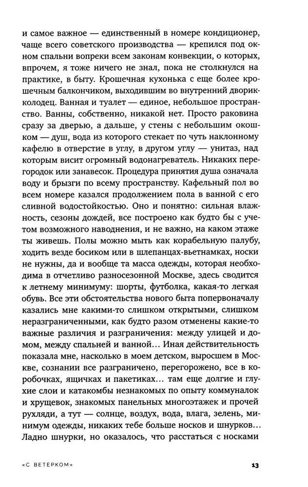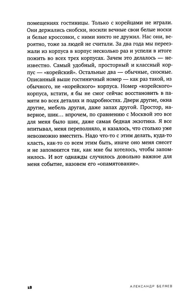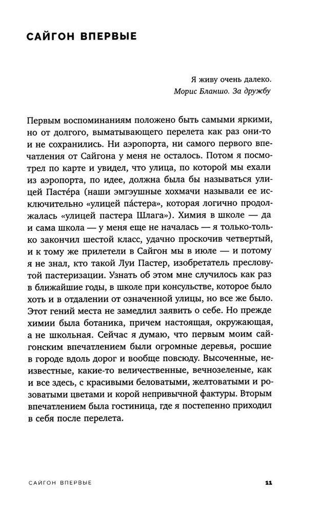 Серия: Письма русского путешественника Самолет «Ил-86» рейсом Москва — Хошимин летом 1994 года летел десять часов и совершал промежуточную посадку в Дели. Так начинается рассказ Александра Беляева о детских и юношеских годах, проведенных во Вьетнаме — стране, уже пережившей войну и колониальный опыт. Центральный рынок «Бен Тхань», известный среди советских как «Сайгон-базар», рынок в «Тхань Де», где можно купить настойки на змеях, гекконах и морских коньках в огромных стеклянных бутылях, уличные забегаловки, где подают «супчик фо», «супчик лао» и «сайгонские блинчики», вечерние дискотеки, на которые съезжалась молодежь на роскошных мотоциклах типа «Хонда-стид» и «Ямаха-вираго», где танцевали под Ace of Base и Dr. Alban... Автор дает памяти отфильтровать всё лишнее и оставить самые выразительные детали, выхваченные взглядом растерянного ребенка. И в то же время этот взгляд, переданный уже сформировавшимся автором, не менее пристально сфокусирован на окружающих рассказчика взрослых — советских людях, вдруг оказавшихся в постсоветском мире. Александр Беляев — поэт, переводчик, японовед, теоретик и практик ориентального письма, автор книг «Листья гинкго» и «BUNGEIRON. Взгляд на японское письмо». |