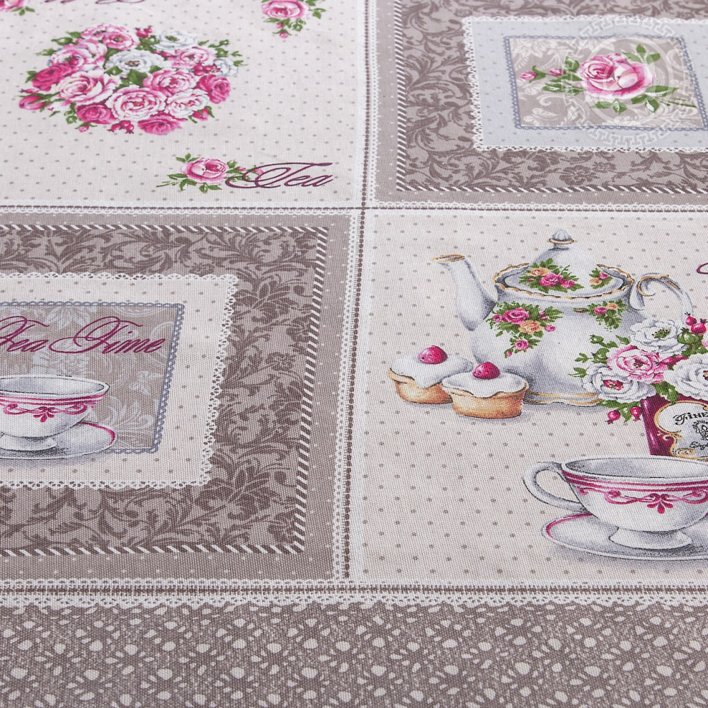 Как и стилю «барокко», одноименному рисунку свойственны контрастность, динамичность образов, пышность и броская цветистость. Он весь покрыт тонкой «сеткой» и ажурными принтами. В центре они «ложатся» на кремово-белый фон, а по бордюру — на светлый кофейный. Границей двух частей композиции служит изящный извитой стебель, усыпанный причудливыми яркими цветами и листьями, выполненными в самых разных оттенках — от золотистого и светло-голубого до сочного зеленого и малинового. Рогожка — очень прочная хлопчатобумажная ткань. В результате особого переплетения нитей двойного и даже тройного, образуется уникальный рисунок напоминающий шахматную доску.