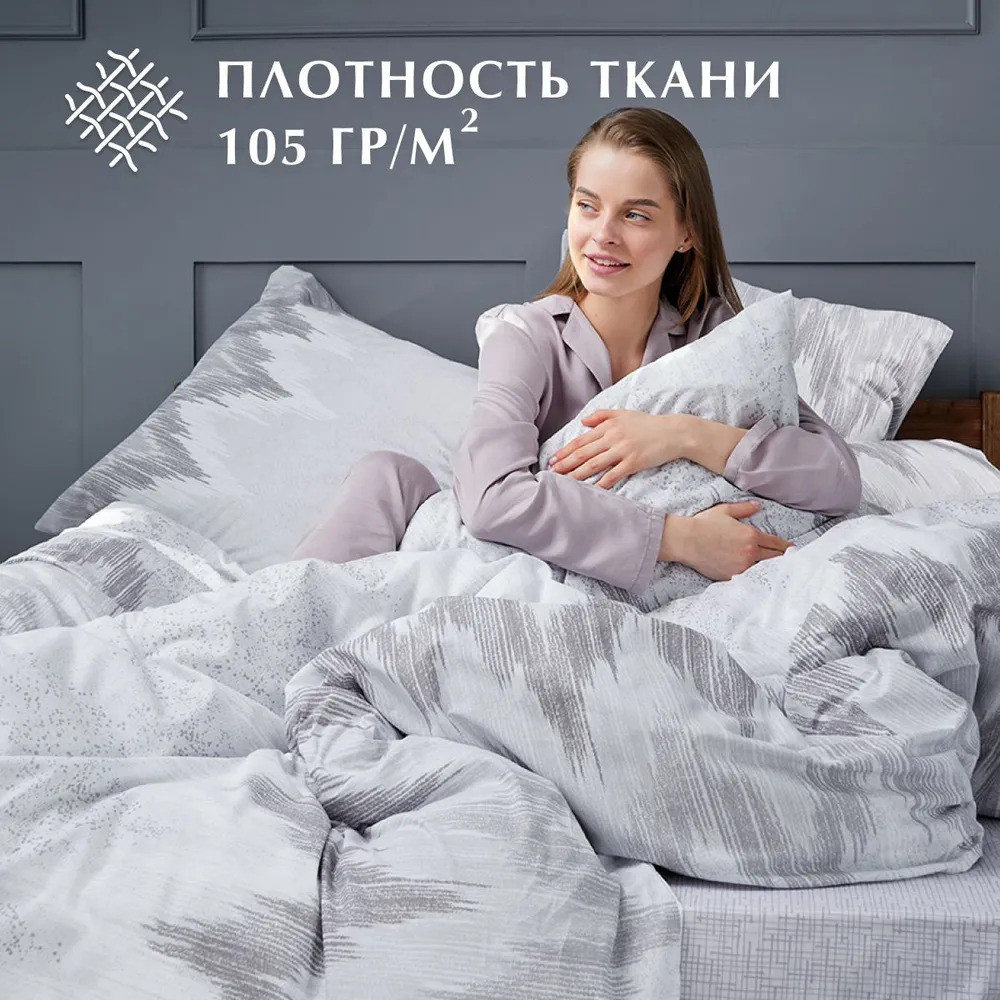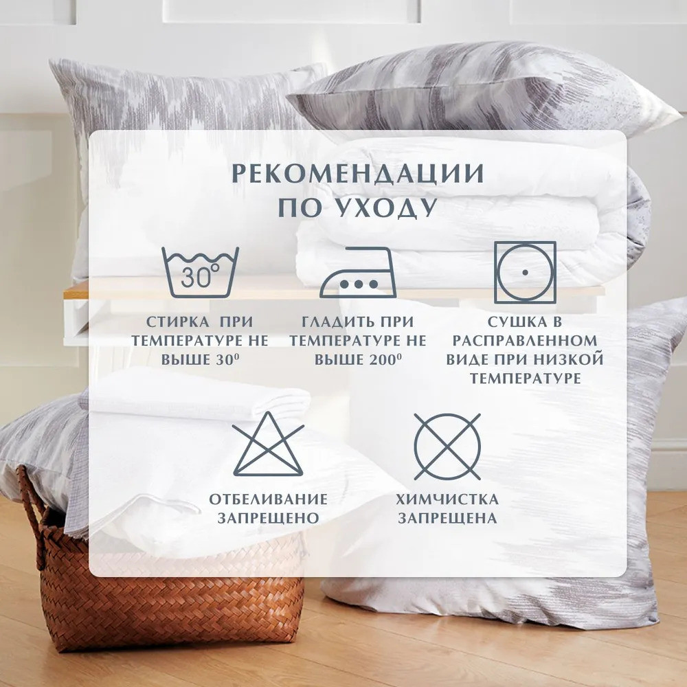 Постельное белье сшито из поплина — самого популярного плетения 100%-го хлопка. Поплин очень мягкий, износостойкий, который производят из крученой хлопковой нити по специальной технологии двойного плетения. Чем больше скручена нить, тем сильнее блестит ткань. Плотное переплетение нитей делает поплин премиум прочным и долговечным. Для производства сатина используют только хлопок высшего качества. Белье из такой ткани выдерживает 200–300 стирок.
