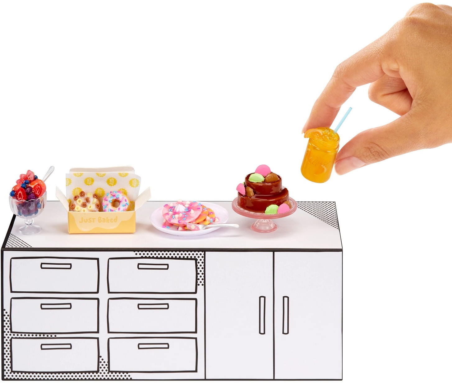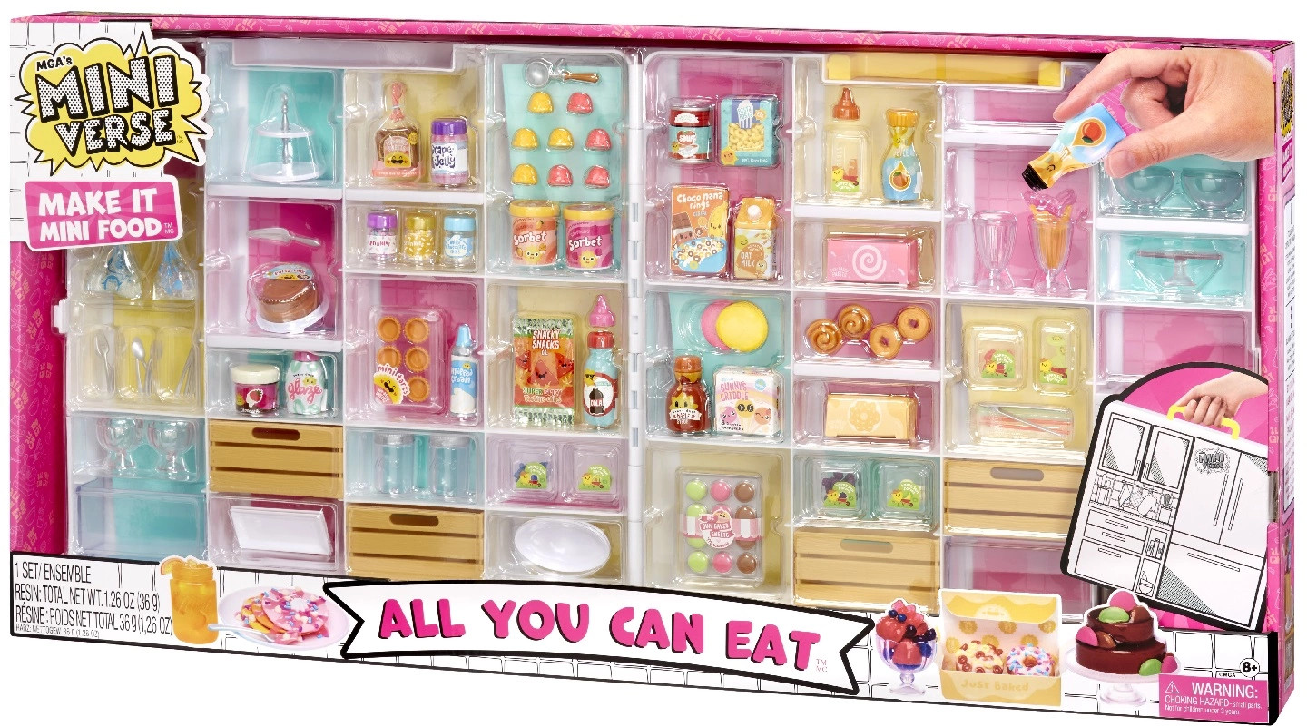 Добро пожаловать в мир «MGA’s Miniverse»! Впервые у тебя есть уникальная возможность не просто собрать игрушечные мини-версии известных блюд и напитков от бренда «MGA’s Miniverse», но и создать все это своими руками! В Большом наборе «Еды» ты найдешь более 100 ингредиентов и кухонных аксессуаров, позволяющих создавать собственные мини-версии любимых закусок и десертов!