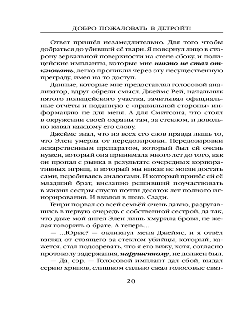 Серия: Киберпанк. Нуар Десять лет детектив Юрис Ливану пытается добиться справедливости и наказать убийцу своей жены, но в этом мире законы созданы для того, чтобы защищать богатых, а не наказывать виновных. Потому, как только появляется призрачный шанс подобраться к убийце на расстояние выстрела, детектив, уже не рассчитывавший на возмездие, встает на след... Даже не подозревая, чем закончится его погоня для всего Детройта! |