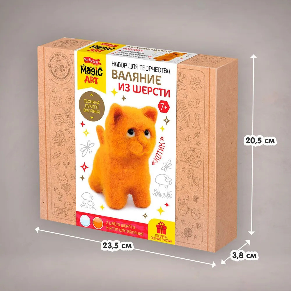 Серия: Magic art Валяние – это одно из древнейших видов рукоделия. В качестве искусства «hand-made» оно получило развитие с середины прошлого века. Секрет его популярности кроется в простоте освоения и огромной широте возможностей. Набор для валяния Котик включает все необходимое для создания симпатичной игрушки в технике сухого валяния. |
