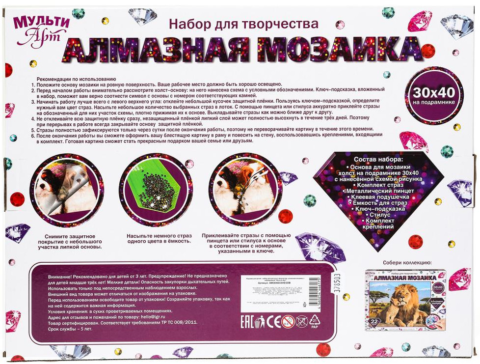 💳 Оплатить за товар можно при получении 🇰🇿 Есть бесплатная доставка по Казахстану 🎁 Копите бонусы с каждой покупки Набор для детского творчества – алмазная мозаика «Две собаки» ТМ «Мульти Арт» - отличный подарок для ребёнка, который будет способствовать развитию его творческих способностей. |