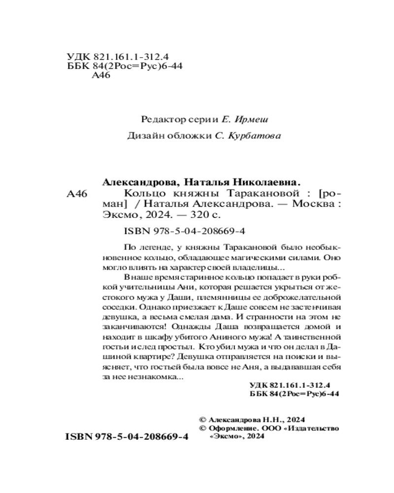 | Кольцо княжны Таракановой    	Наталья Николаевна Александрова