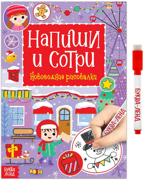 В данный момент этот товар отсутствует в продаже. Возможно, у нас найдется аналогичный или похожий товар здесь. Серия: Новогодние книги Буква-Ленд Многоразовая книга «Напиши и сотри. Новогодние рисовалки» поможет скоротать время перед долгожданным праздником, а ещё не даст заскучать и поможет потренировать важные навыки. Малыш потренируется правильно выполнять задания, научится аккуратности и усидчивости. А ещё поймёт, что ошибаться не страшно. Даже если что-то не получится с первого раза, рисунок всегда можно стереть и начать заново.
