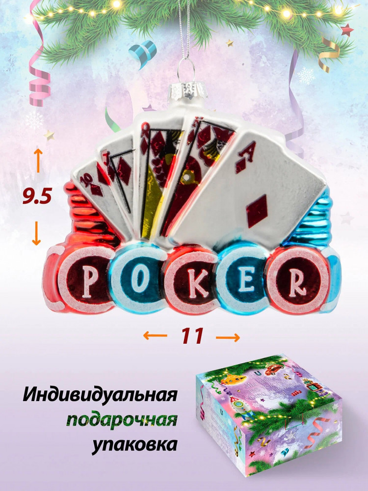 Ultramarin Игрушка ёлочная «Покер»В данный момент этот товар отсутствует в продаже. Возможно, у нас найдется аналогичный или похожий товар здесь. Новогодние игрушки являются неотъемлемой частью праздника, которые создаст атмосферу волшебства и уюта. Одним из самых интересных видов новогодних украшений на елку являются стеклянные фигурные игрушки. Они приносят много радости как детям, так и взрослым. Елочная игрушка стекло в виде игральных карт Флеш-рояль из бубен. У сувенира есть веревочка для подвеса. Игрушка на елку прекрасно украсит символ праздника и порадует гостей насыщенными цветами, красивым мерцанием и узорами. |