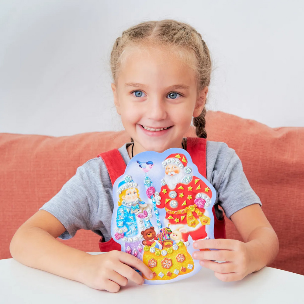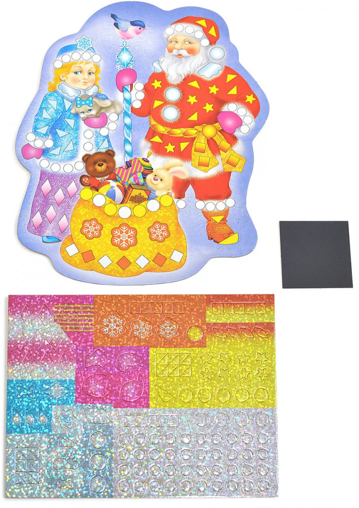Приближается Новый год. В этот волшебный зимний праздник каждый ребёнок ждёт волшебства, сладостей и подарков. Поддержать новогоднюю атмосферу поможет новый набор для творчества от «Дрофы-Медиа», в котором нужно украсить блестящими деталями мозаики весёлую праздничную картинку. Никаких клея и ножниц — в наборе уже есть всё для работы. Не забудьте приклеить кусочек магнитного винила на обратную сторону картинки. Готово! Теперь весёлых, добрых сказочных героев можно прикрепить к магнитной доске или холодильнику, и они будут радовать вашего малыша, создавая волшебную атмосферу зимних праздников. Увлекательный и интересный вид творчества незаметно для ребёнка развивает мелкую моторику, цветовое восприятие, художественный вкус, усидчивость. Если ребенок маленький, помогите ему достать мелкие детали из блестящего блока. Вынимать детали нужно аккуратно, чтобы не повредить верхний слой, сильно не сгибать. Подходит в качестве тематической поделки или новогоднего подарка в детском саду. |