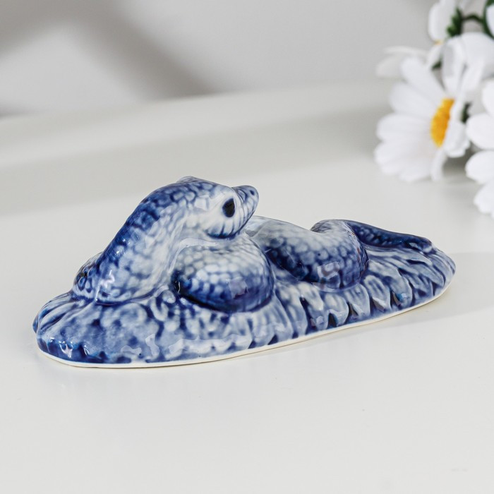 Фигурка декоративная «Змея на лужайке»В данный момент этот товар отсутствует в продаже. Возможно, у нас найдется аналогичный или похожий товар здесь. Гжель — известнейший русский народный промысел, который отличается уникальным стилем росписи посуды и предметов интерьера из керамики. Изначально гжель была цветной, а в XVIII веке мастера начали использовать кобальт. Эта тёмно-серая краска становится ярко-синей в процессе обжига изделия.Так появился узнаваемый стиль гжели — синяя пейзажная и растительная роспись, которая соединяется с геометрическим орнаментом на белоснежном фоне. Мастера расписывают каждый предмет только вручную. |