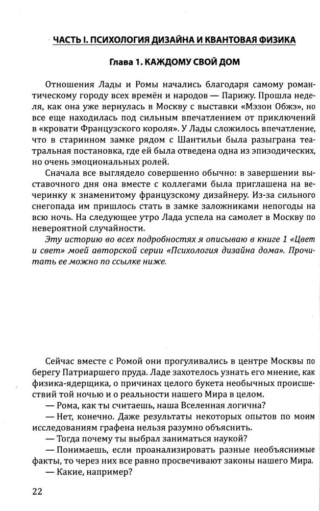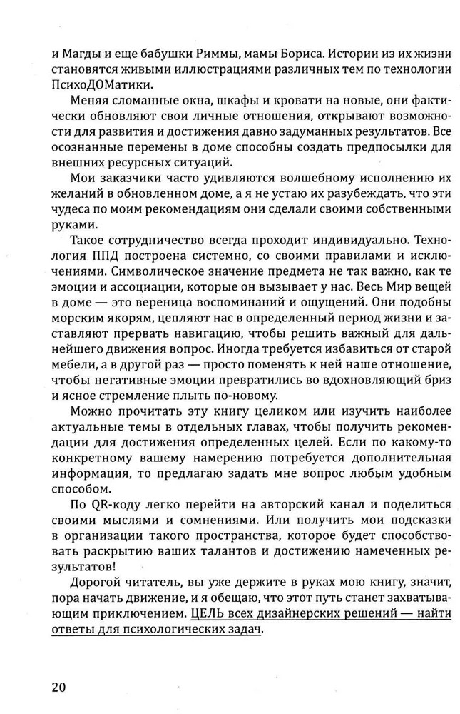 ПсихоДОМатика — новая методика, объединяющая психологию и дизайн интерьера. Она изучает влияние домашней обстановки на физическое здоровье, чувства и образ жизни человека. Из книги вы узнаете, как на самом деле реагируют психика, мозг и весь организм на изменения в организации жилого пространства; и как применить эти знания на практике для улучшения качества жизни. Подобных рекомендаций не дают в дизайн-школах и в кабинетах психологов. Мануэла Арапова — психолог и дизайнер интерьера с 20-летней практикой, автор обучающих программ с тысячной аудиторией. Уже более 10 лет она помогает людям избавиться от большинства психологических и физических проблем с помощью изменений в их доме. Третья книга авторской серии «Психология дизайна дома» — конечно, не волшебная палочка, от которой цели реализуются сами по себе, а эффективный ресурс, помогающий действовать в правильном направлении. |