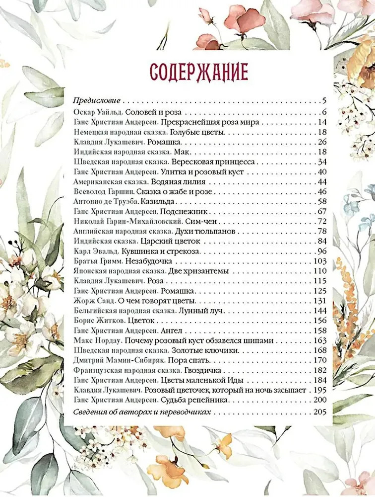 На страницах этой книги «оживают» розы, лотосы, тюльпаны, подснежники, гвоздики, незабудки, хризантемы, рассказывая о своих приключениях: здесь злая жаба охотится за прекрасной розой, скромная ромашка спасает жизнь больной женщины, коварная обманщица превращается в красный мак, бутоны тюльпанов становятся домиками для эльфов, белая хризантема оказывается на гербе знатного рода, а самый обычный репейник устраивает брак полюбивших друг друга юноши и девушки.
