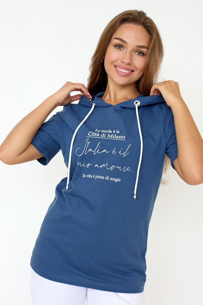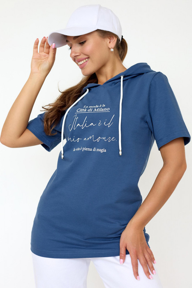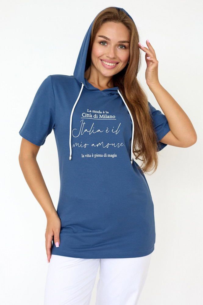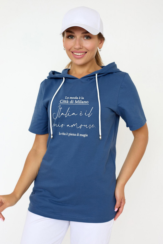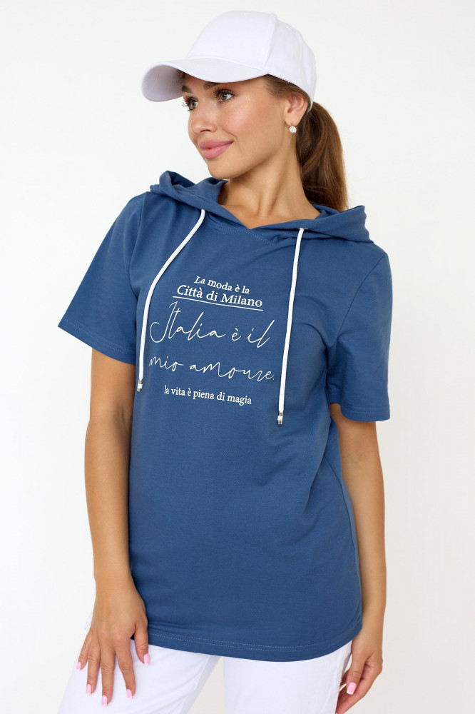 супер футболка! трикотаж приятный 100% хлопок давно такую хотела! чтоб с капюшоном! цвет скорее персиковый-очень красивый! покупкой очень довольна!