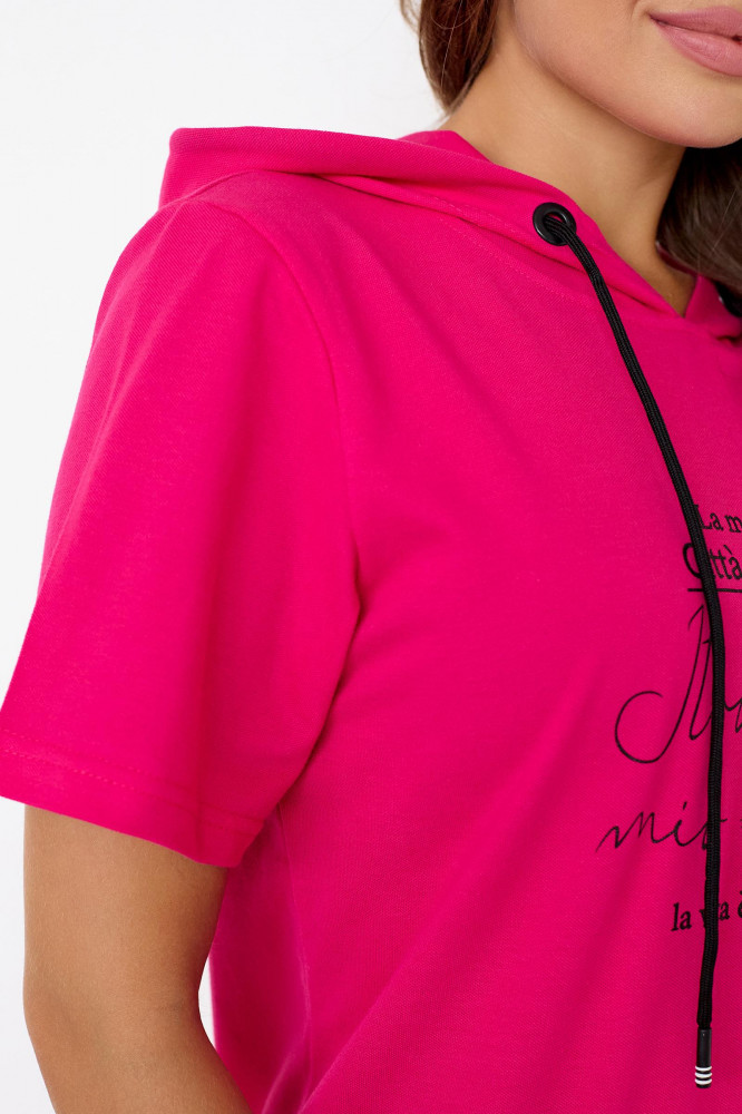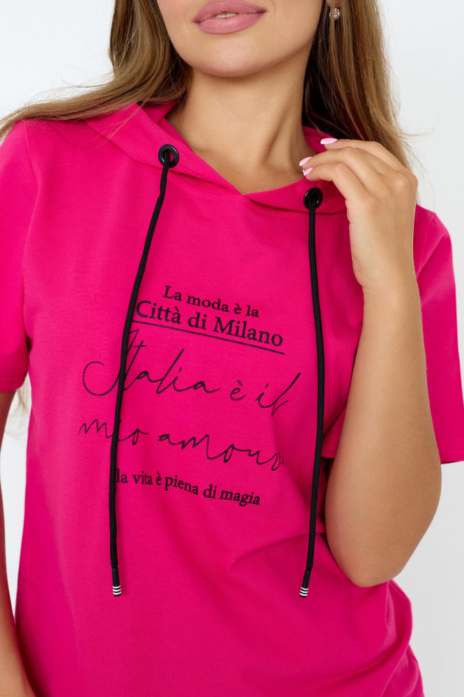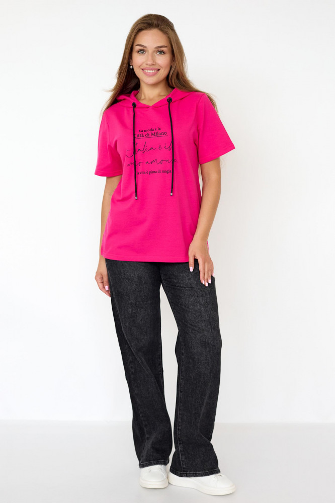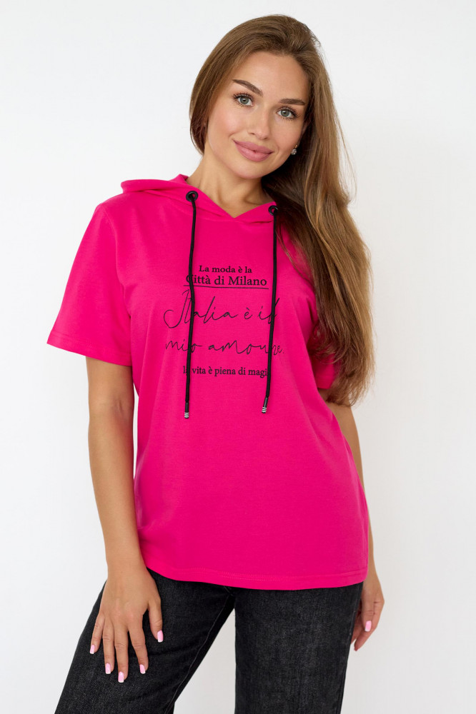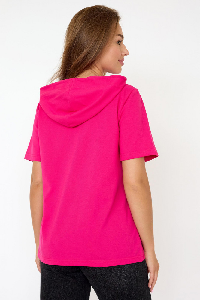 супер футболка! трикотаж приятный 100% хлопок давно такую хотела! чтоб с капюшоном! цвет скорее персиковый-очень красивый! покупкой очень довольна!
