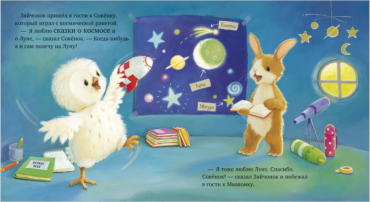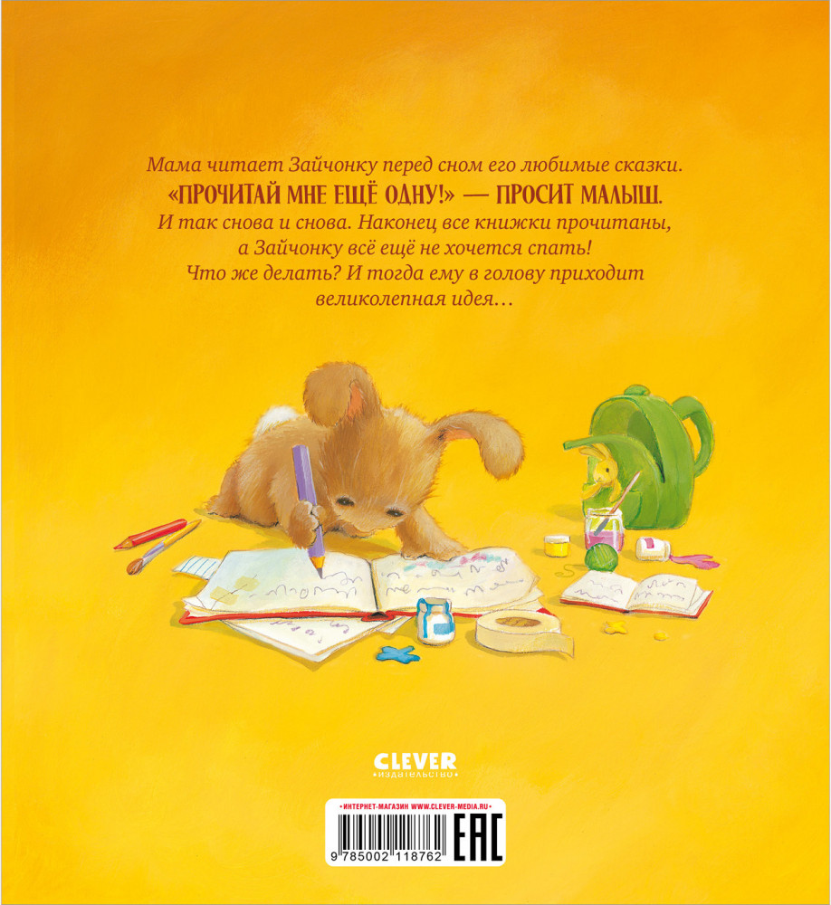 Лучшая сказка на ночь для ЗайчонкаВ данный момент этот товар отсутствует в продаже. Возможно, у нас найдется аналогичный или похожий товар здесь. Серия: Книжки-картинки (мягкая обложка) Мама читает Зайчонку перед сном его любимые сказки. «Прочитай мне еще одну!» — просит малыш. И так снова и снова. Наконец все книжки прочитаны, а Зайчонку все еще не хочется спать! Что же делать? И тогда ему в голову приходит великолепная идея... |