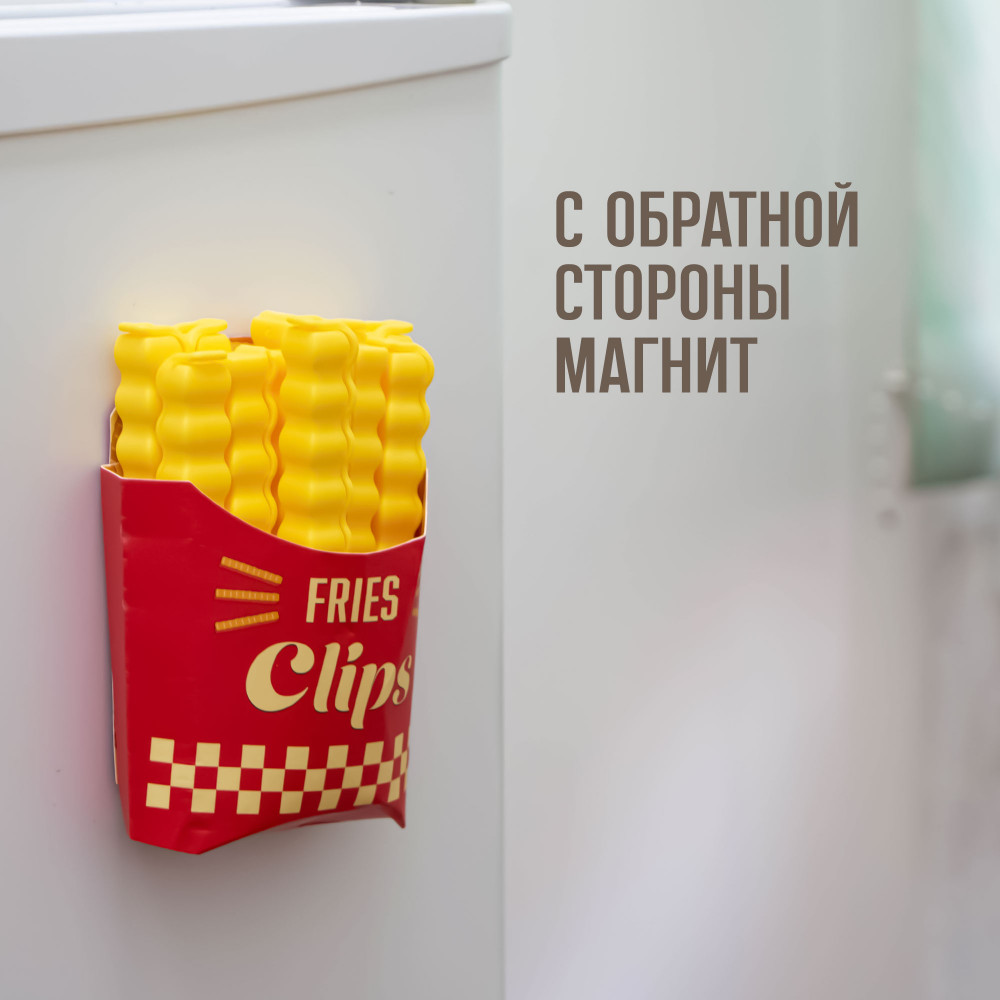 Специальные кухонные зажимы, прищепки, клипсы для хранения для пакетов «Клипер» герметично закроют пакет, сохранят продукты и сыпучие вещества от просыпания и загрязнения поверхности. Плотное прилегание и фиксацию обеспечивают ребра внутри изделия. Для использования зажима нужно сложить края пакета, раскрыть зажим и защелкнуть его. Удобство и простота зажимов создадут уют и чистоту в кухонных шкафах и помещении. Дополнительно есть контейнер, который можно установить на любое место, за счет чего зажимы для пакетов будут хранится в одном месте. |
