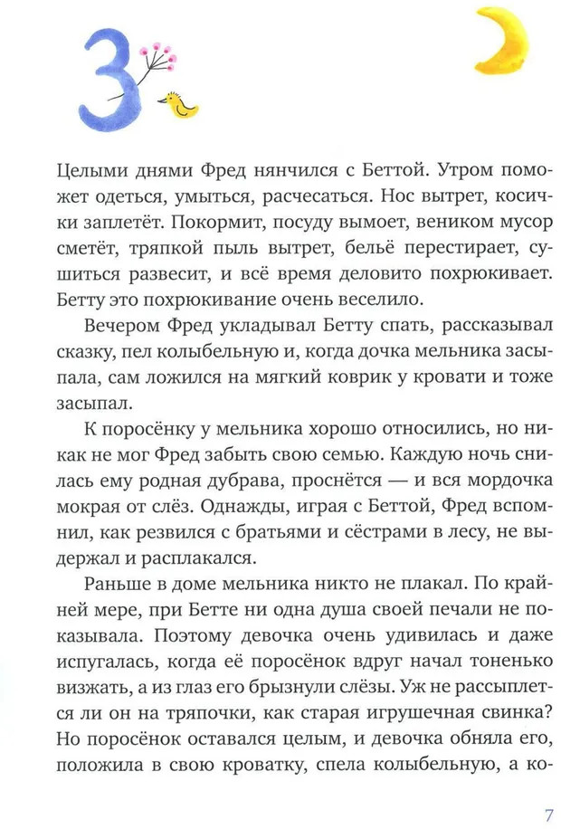 Жил-был маленький поросенок, а родичи взяли да и отдали его в няньки к мельниковой дочке Бетте. Если бы он только знал, что ждет его впереди! Уже вскоре он будет гнаться за волками, укравшими девочку, по дороге встретит кабана-колдуна, крысу, которая окажется ежихой, лося, мечтающего стать слоном... И ринется в волчье логово, только чтобы спасти подружку. В этой сказке слабые оказываются намного сильнее злых и грозных. А люди и животные выступают на равных. И всем им предстоит пережить зиму, полную трудностей и приключений.