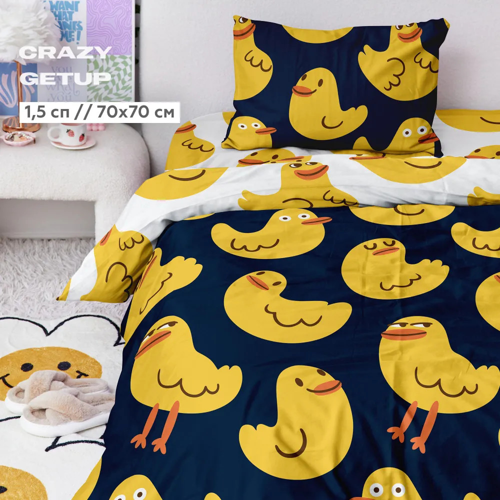 Постельное белье может быть динамичным, интересным и совершенно уникальным: с неповторимыми и оригинальными принтами или с актуальными персонажами из сериалов, аниме и игр. О качестве нашей продукции волноваться не стоит: наше постельное белье изготовлено из 100% хлопка, оно практичное и долговечное. Это детское постельное белье имеет клевый дизайн с ярким и четким принтом. Такое постельное белье подойдет как для детей, так и подросткам. Набор от «Crazy Getup» изготовлен из ткани поплин, она гладкая и мягкая. В комплект входит классическая простынь без резинки, пододеяльник с клапаном и наволочка с клапаном. Материал — хлопок.