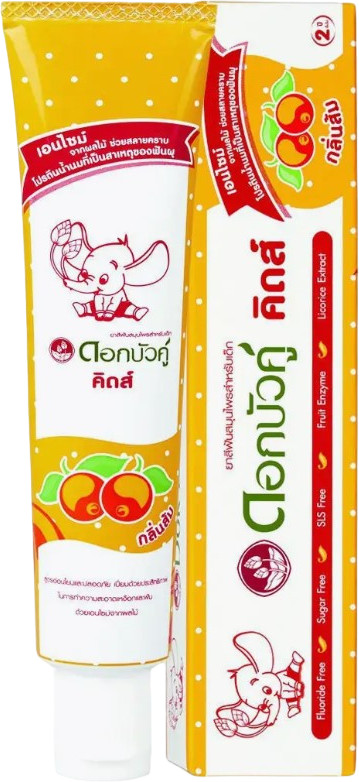 Тайская зубная паста для детей Апельсин от тайского бренда Dok Bua Ku (Twin Lotus) разработана специально для чувствительной эмали молочных зубов, она не содержит фтора, лаурилсульфата и сахара, деликатно, но качественно очищает зубы, десны и ротовую полость от остатков пищи, ягодного налета или добавленных в пищу красителей, предупреждает развитие кариеса.