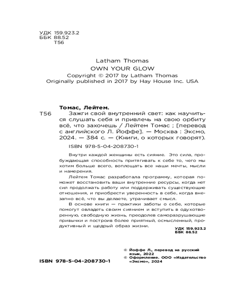 💳 Оплатить за товар можно при получении 🇰🇿 Есть бесплатная доставка по Казахстану 🎁 Копите бонусы с каждой покупки Серия: Книги, о которых говорят Лейтем Томас — lifestyle-эксперт, консультант предпринимателей, топ-менеджеров крупных компаний и мировых звезд, входит в список 100 самых влиятельных лидеров по рейтингу Опры Уинфри. |