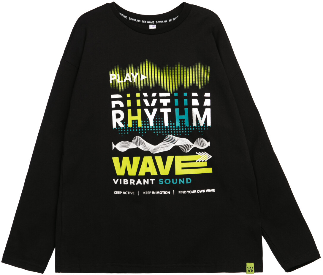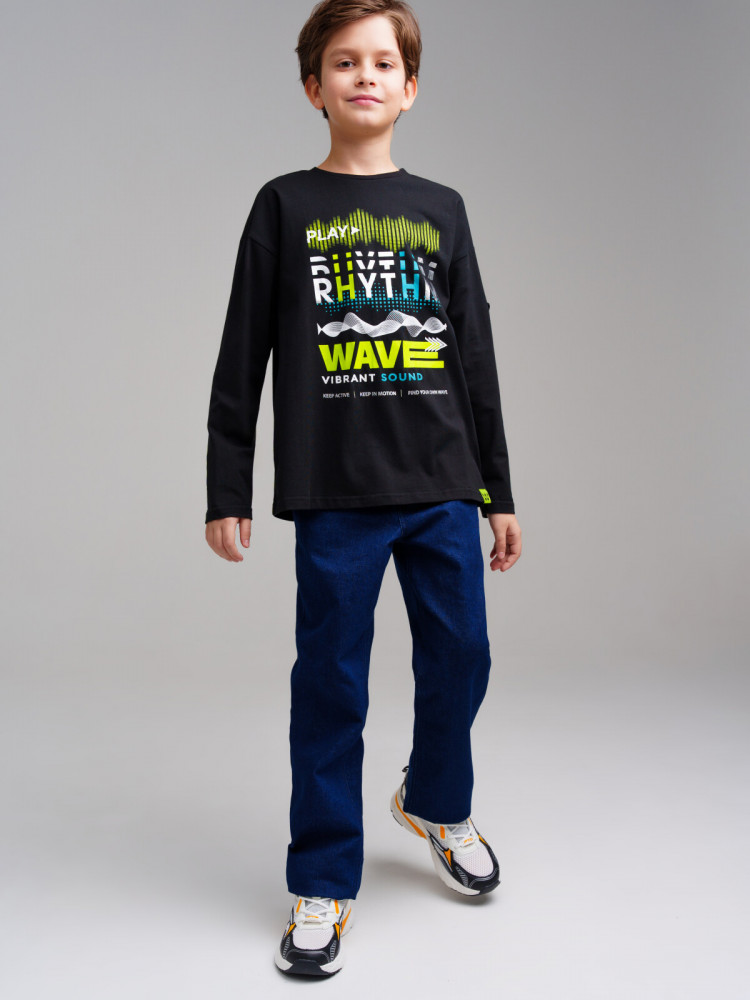 Футболка для мальчика подростка. Футболка с длинным рукавом из качественного и приятного на ощупь трикотажа джерси. Лонгслив с высоким содержанием хлопка 95%. Благодаря наличию эластана в составе ткани изделие проще в уходе и держит форму. Модель из капсульной коллекции My wave. Соберите полный образ в едином стиле!