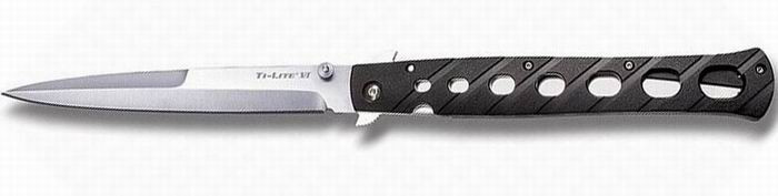 Ti-lite 6 — старший брат уже ставшего классикой Ti-lite 4. Это стилет от Cold Steel для ношения на EDC с харизматичным и довольно агрессивным дизайном, а также шестидюймовым клинком. В данном исполнении нож выделяется клинком формы spear-point с покрытием satin, извлекается тремя способами: с помощью шпенька, вейва или инерционным способом. Несмотря на то, что Ti-lite не имеет пружины, открывается он легко и быстро. За фиксацию клинка в открытом положении отвечает замок Liner-Lock. На стальных лайнерах перфорированные накладки из Zytel — прочного и лёгкого полимера. Рукоять ножа оснащена удобной клипсой для ношения в кармане или на ремне. Нож отлично лежит в руке и прекрасно смотрится на кармане.