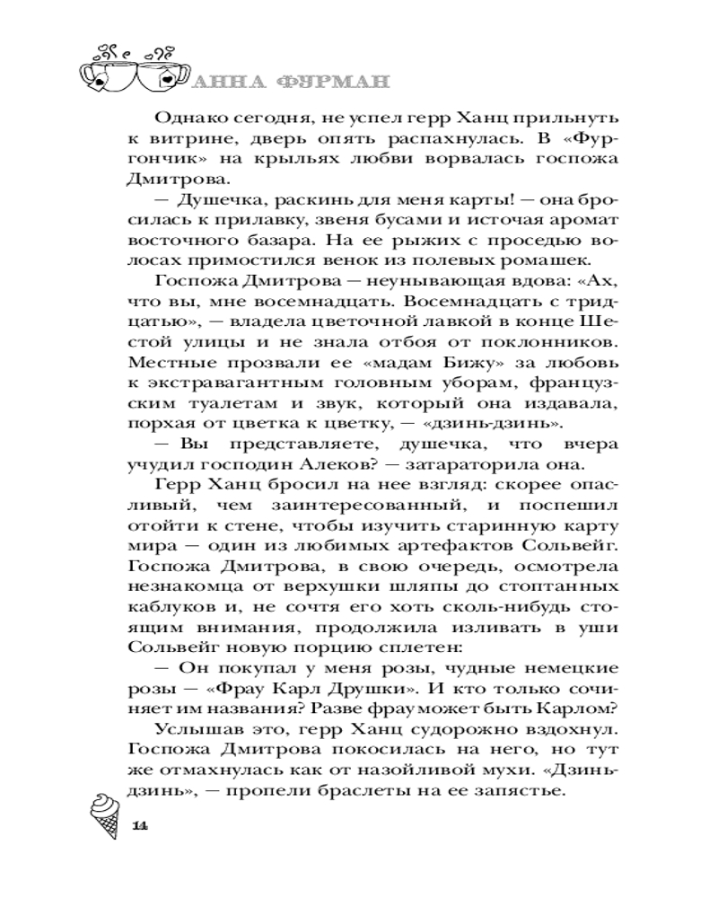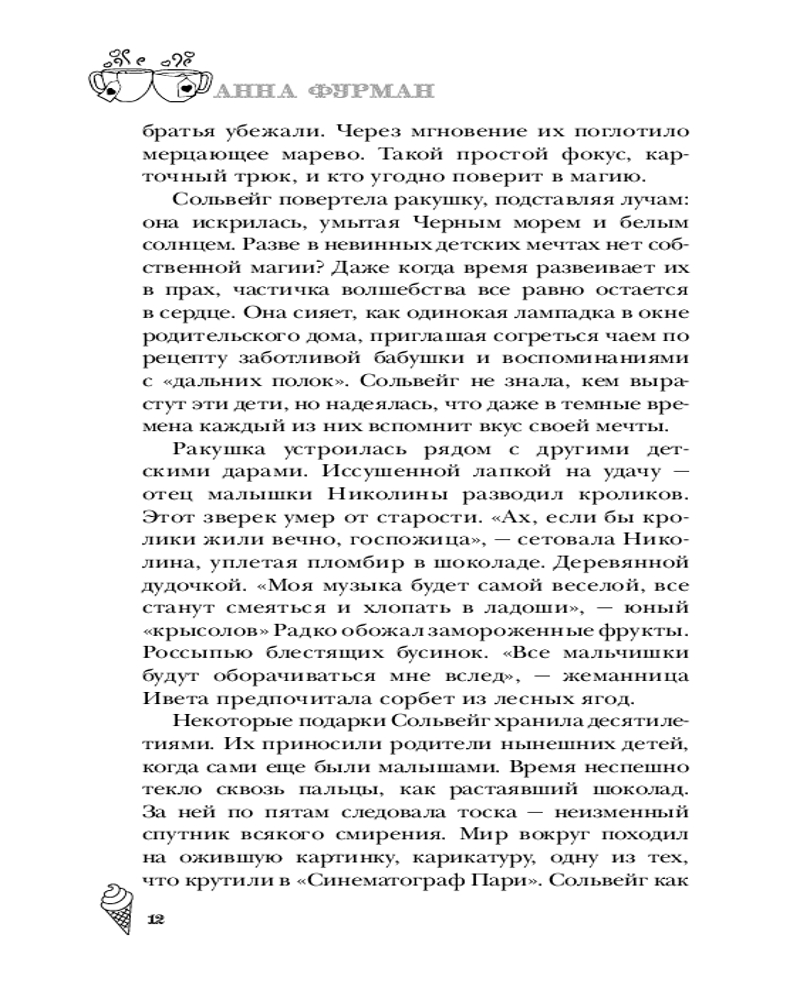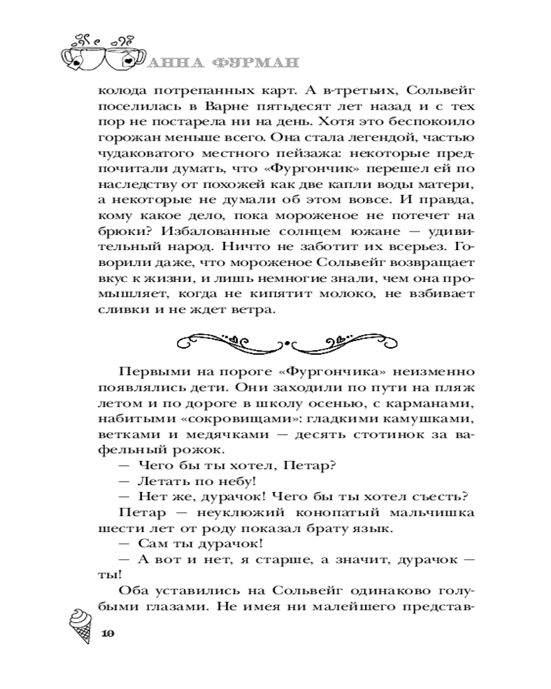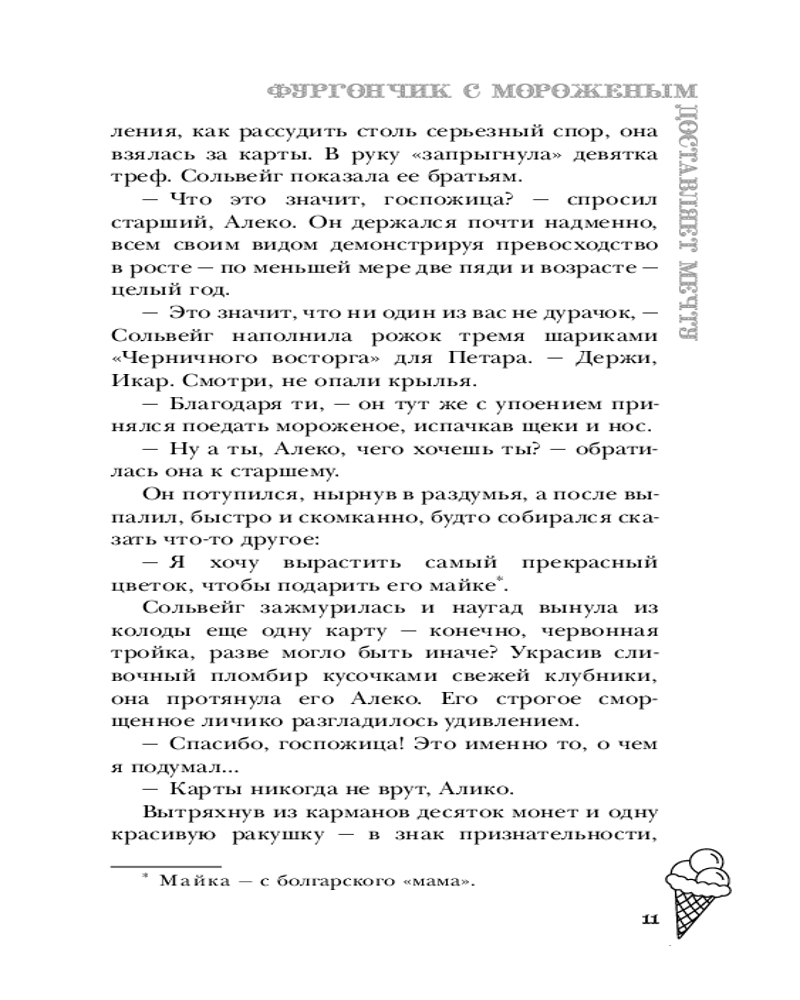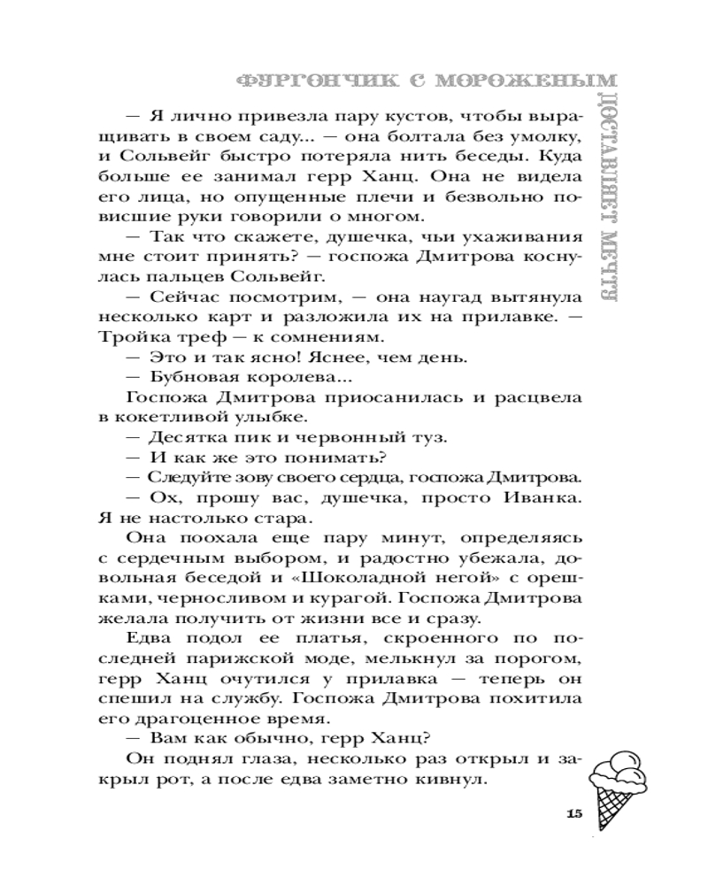 Серия: Лавочка чудес Ведьма Сольвейг вот уже четыреста лет собирает и бережно хранит чужие мечты: маленькие и большие, необычные и самые сокровенные, даруя в обмен на них вечную жизнь. А в свободное время торгует мороженым в лавке под названием «Фургончик» в приветливом приморском городке. Жизнь Сольвейг кажется похожей на сказку, но так ли прекрасна вечность, в которой нет собственных желаний и надежд? Задаваясь этим вопросом, Сольвейг проводит день за днем, пока северный ветер не приносит на порог «Фургончика» необычного гостя — коммивояжера из Англии, который мечтает попробовать самое вкусное мороженое в мире. Возможно, именно он поможет найти ответ. |