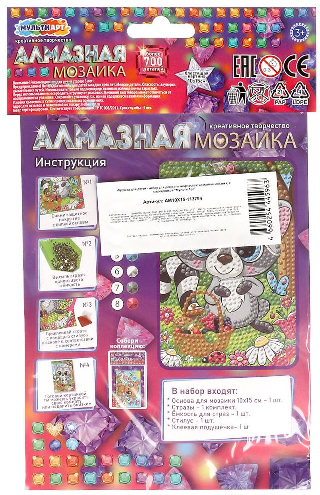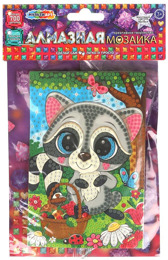 Набор для детского творчества — алмазная мозаика-открытка «Енотик» ТМ «Мульти Арт» — отличный подарок для ребёнка, который будет способствовать развитию его творческих способностей: