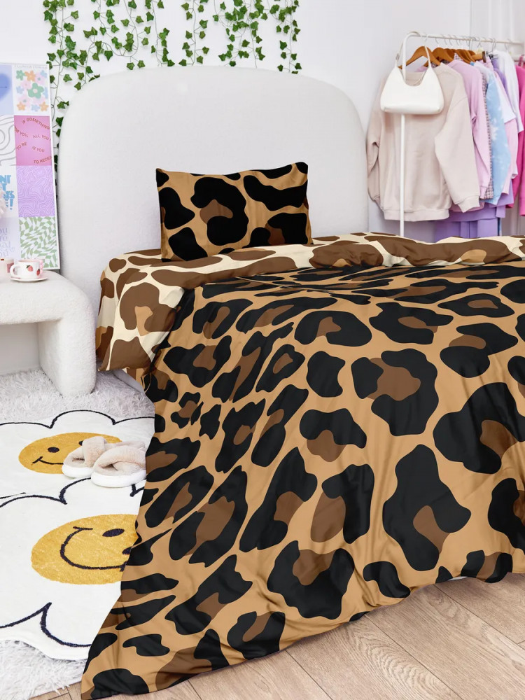 Яркое и нежное постельное белье «Leopard» украсит интерьер комнаты девочки-подростка, подчеркнет ее индивидуальность и творческие черты. Пододеяльник и наволочки выполнены в красочных тонах, которые приглушает спокойный серый оттенок простыни. Такой комплект отлично впишется в современный интерьер спальни. Комплект выполнен из ткани перкаль. Эта ткань из 100% хлопка. Материал прочный внутри и приятный к телу снаружи. Особое переплетение позволяет ткани хорошо держать форму. Материал износостойкий, легко переносит стирки и глажки, сохраняя свой первоначальный цвет.