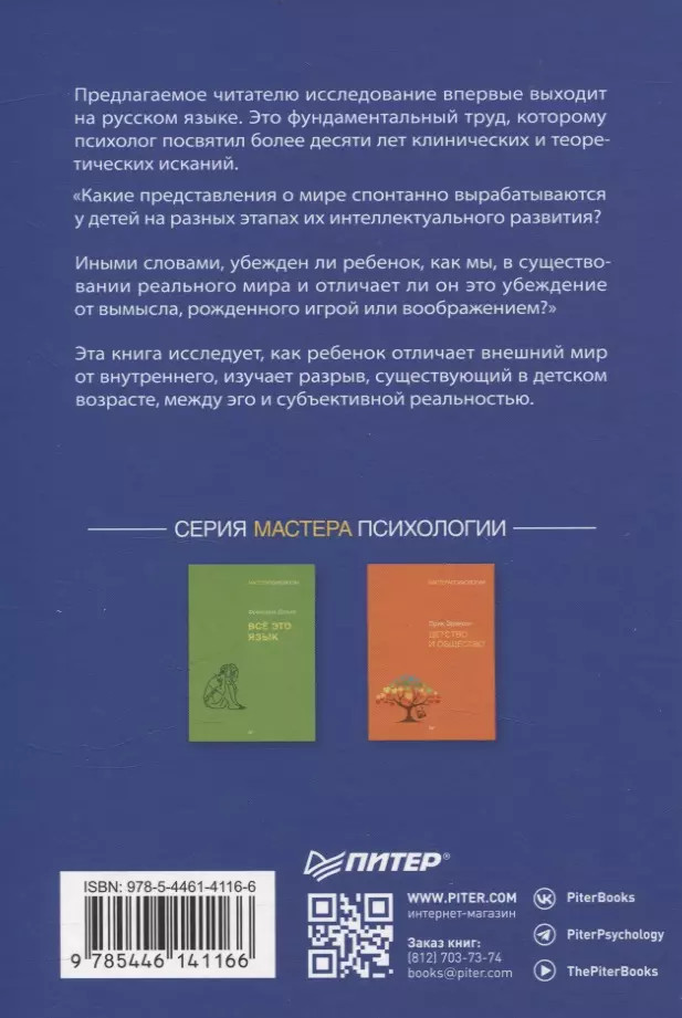 💳 Оплатить за товар можно при получении 🇰🇿 Есть бесплатная доставка по Казахстану 🎁 Копите бонусы с каждой покупки Жан Пиаже — выдающийся швейцарский психолог, более шестидесяти лет посвятивший изучению детской психологии и мышления. Предлагаемое читателю исследование впервые выходит на русском языке. Это фундаментальный труд, созданию которого предшествовало более десяти лет клинических и теоретических исканий. Эта книга исследует, как ребенок отличает внешний мир от внутреннего, изучает разрыв, который существует в детском возрасте, между эго и субъективной реальностью. |