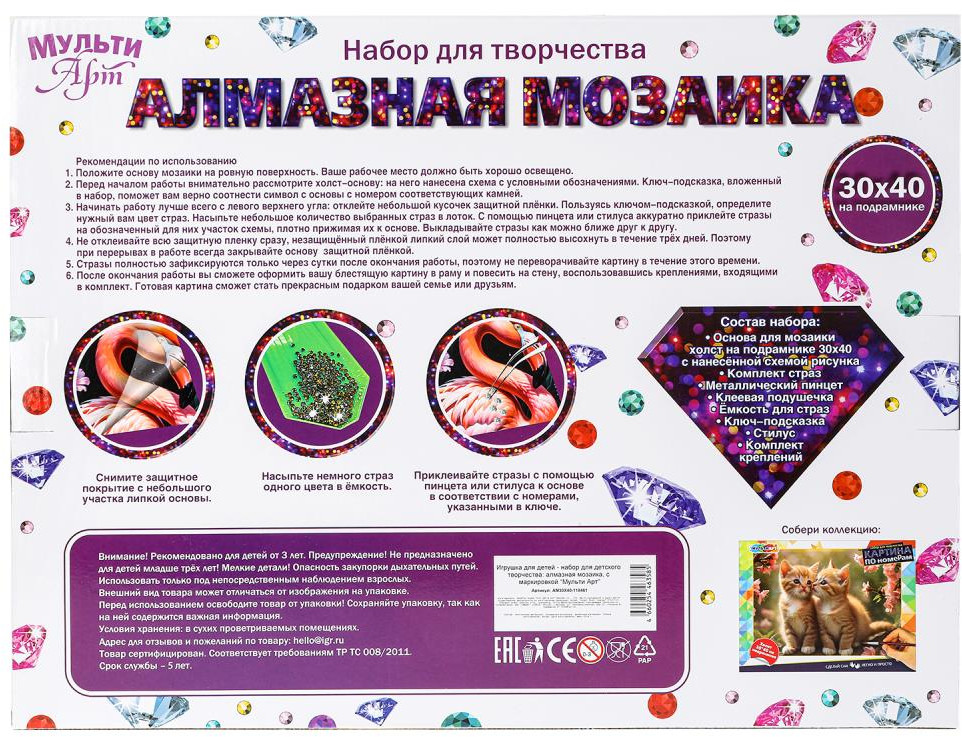 💳 Оплатить за товар можно при получении 🇰🇿 Есть бесплатная доставка по Казахстану 🎁 Копите бонусы с каждой покупки Набор для детского творчества — алмазная мозаика «Фламинго в цветах» ТМ «Мульти Арт» — отличный подарок для ребёнка, который будет способствовать развитию его творческих способностей. |