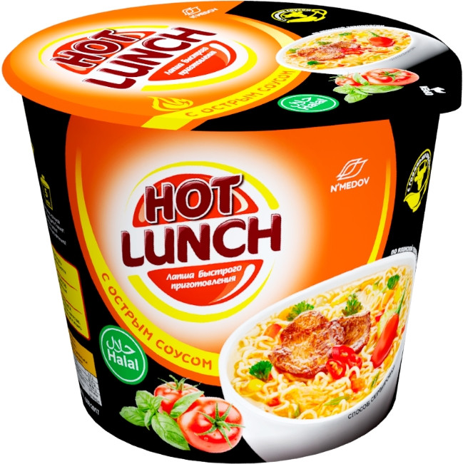 Аппетитная лапша быстрого приготовления по японской технологии. Бренд Hot Lunch принадлежит крупной производственной компании N’medov, расположенной в Узбекистане. |