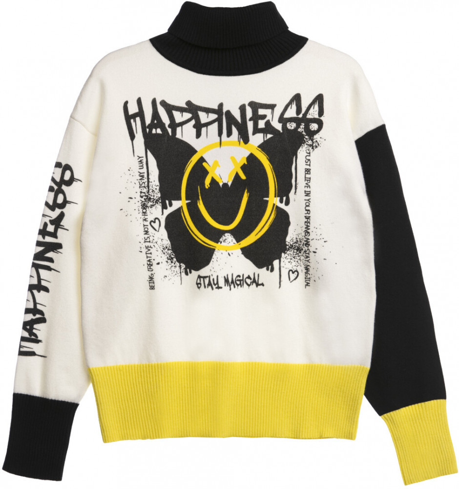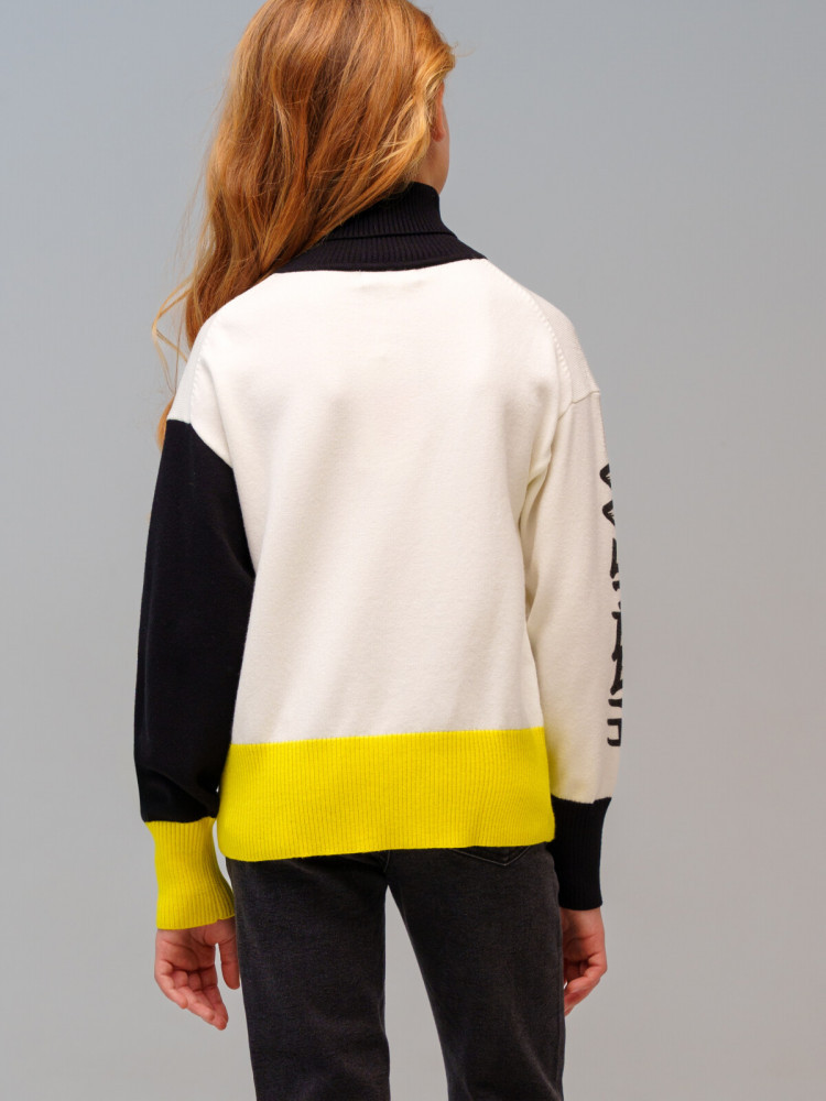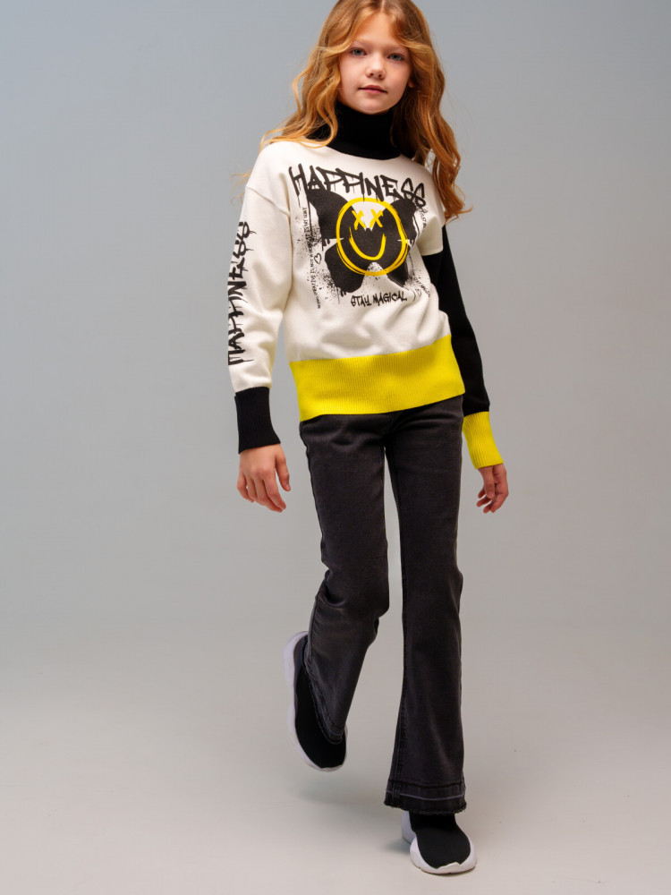 Свитер для девочки подростка. Свитер из вязаного трикотажа с добавлением вискозы. Модный свитер жаккардовой вязки с высоким содержанием вискозы. Вискоза хорошо поглощает влагу, отлично пропускают воздух. Изделия приятны к телу, и не вызывают раздражения. Модель из капсульной коллекции Digital transform. Соберите полный образ в едином стиле!