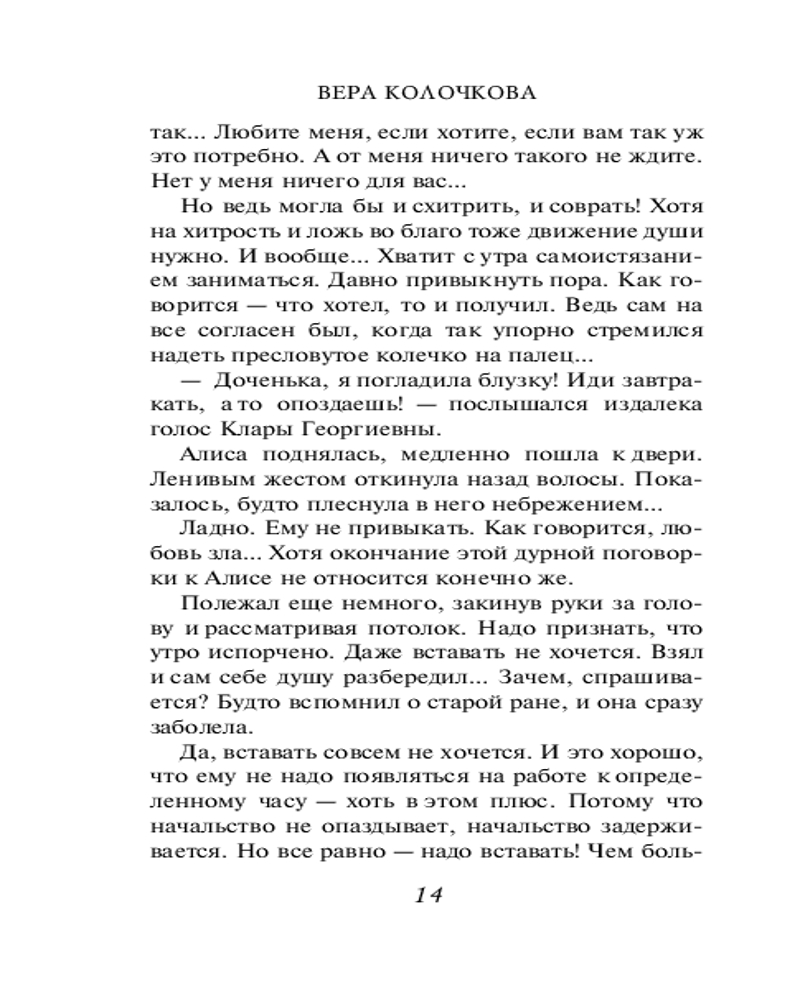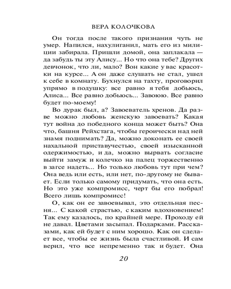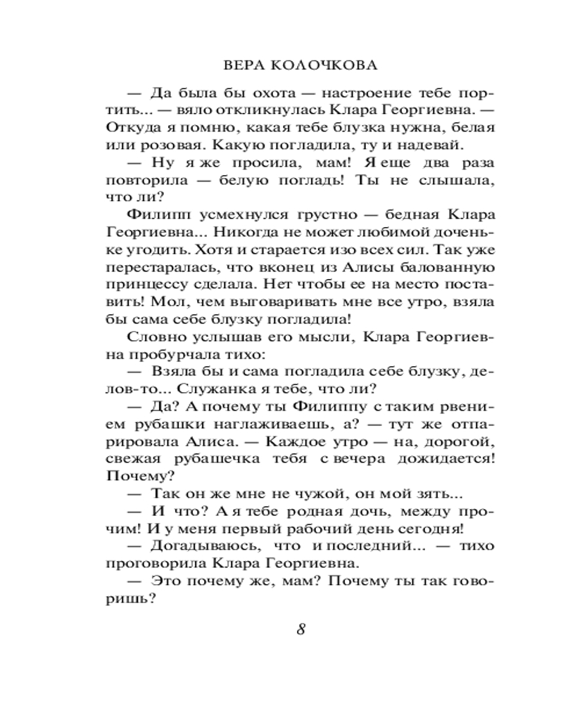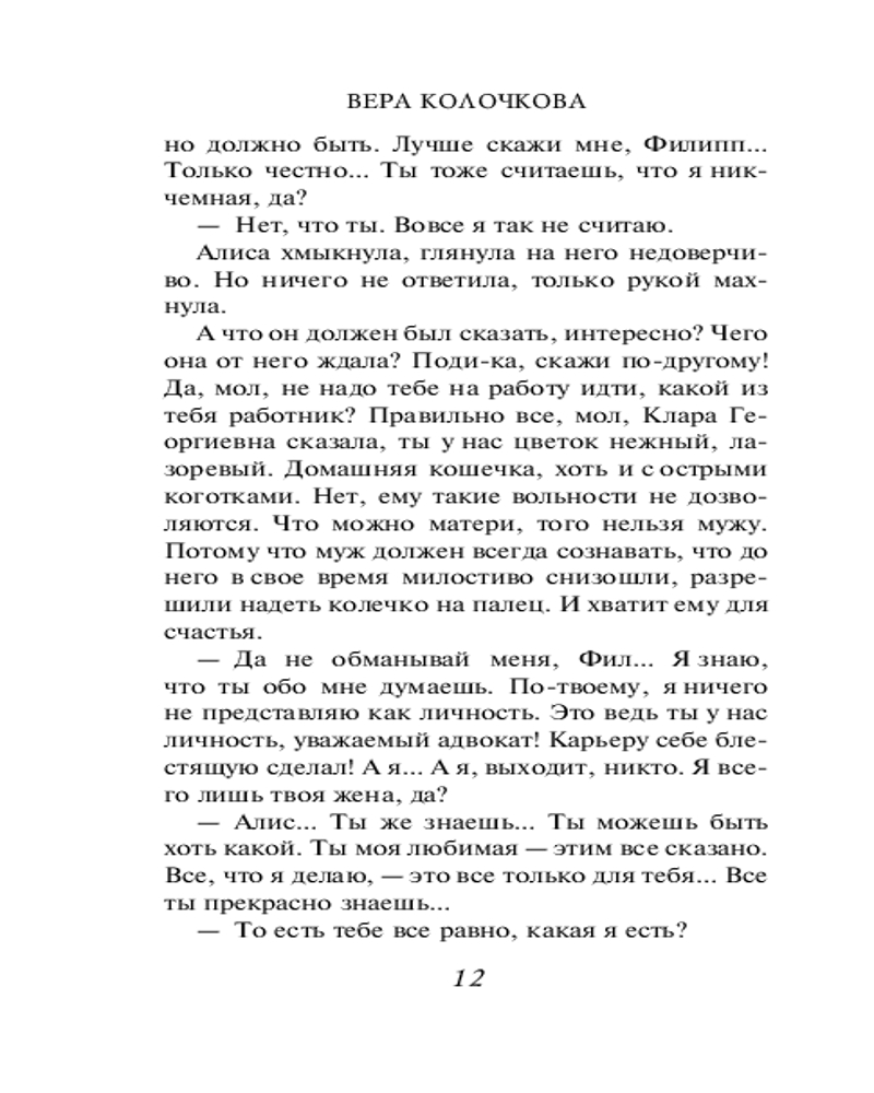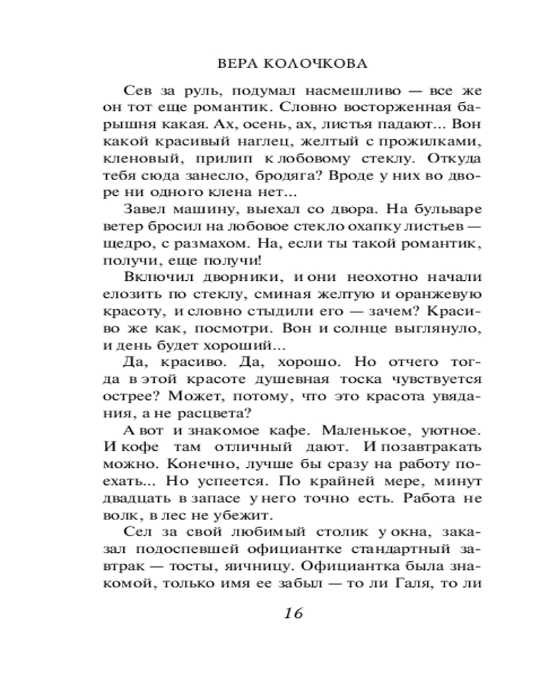 💳 Оплатить за товар можно при получении 🇰🇿 Есть бесплатная доставка по Казахстану 🎁 Копите бонусы с каждой покупки Серия: Секреты женского счастья. Проза Веры Колочковой (обложка) Библиография Веры Колочковой насчитывает более 40 романов, некоторые из которых уже воплощены на экране. Любовь к автору вполне объяснима, ведь она пишет об обычных людях, которые стремятся к лучшей жизни и борются за собственное счастье. Простые и чувственные, увлекательные и романтичные, романы Колочковой задевают за живое, заставляя сопереживать и радоваться героям как собственным знакомым. |