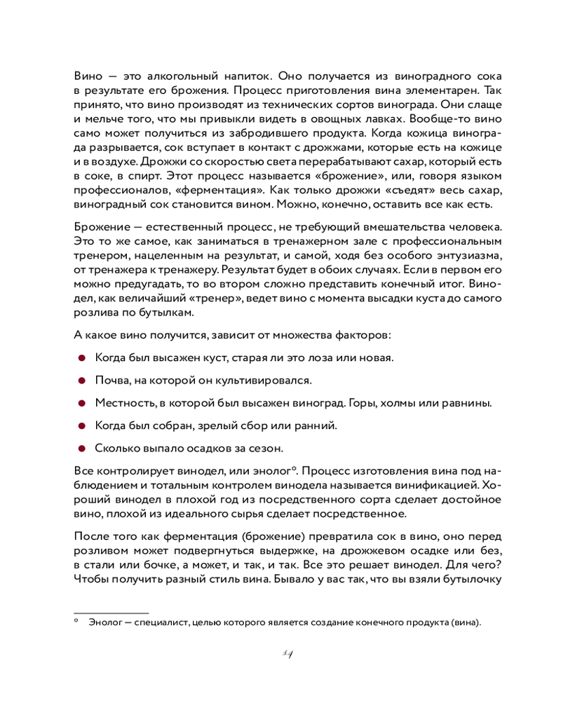 💳 Оплатить за товар можно при получении 🇰🇿 Есть бесплатная доставка по Казахстану 🎁 Копите бонусы с каждой покупки Серия: Вина и напитки мира Каждый день десятки людей задаются вопросами «Какое вино купить? Где покупать? Какие вина с какой едой сочетаются? А оно не порошковое?» Вы найдете ответы на них здесь. Эта книга путем простых пошаговых действий поможет разобраться в мире вина. Уже после ее прочтения, смотря только на этикетку бутылки, вы научитесь понимать, какого вкуса будет вино, сможете выбирать вино в ресторане, уметь подбирать его к еде, перестанете тратить деньги на плохое вино и не будете «плавать» в винных терминах. |