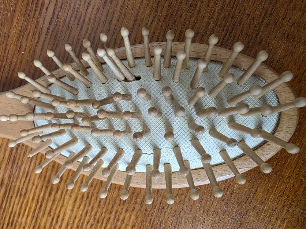 После нескольких месяцев использования раскрошилась резина, которая держит зубчики. Расческа ужасного качества. Не берите!