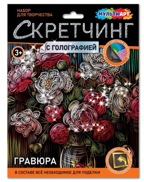Набор для творчества — скретчинг гравюра (микс) «Цветы» ТМ «Мульти Арт» — отличный подарок для ребёнка, который будет способствовать развитию его творческих способностей: |