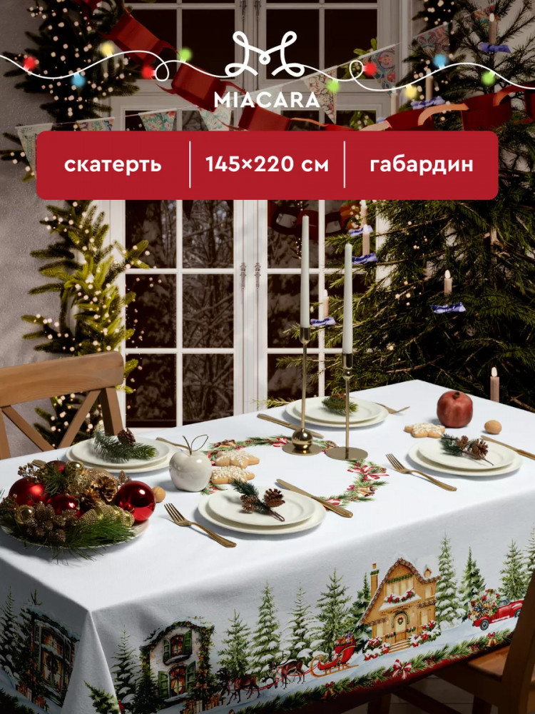 Чтобы новогодняя скатерть прослужила дольше, сохранив цвет и принт, материалу необходим хороший уход. Нарядный текстиль стирается в машинке на 30С без отбеливателя. Яркая и цветная скатерть — универсальное украшение комнаты и приятный подарок для близких. Текстильный элемент настольного декора порадует маму, сестру или бабушку уже в этот Новый Год! Многоразовая скатерть станет отличным дополнением интерьера вашего домика в рождественский и НГ сезон. Новогодняя скатерть — стильный декор для дома или дачи. Девушки и женщины будут в восторге от такой подарочной идеи. В ассортименте Mia Cara можно найти большой выбор дизайнов по приятной цене. Скатерти и другие сервировочные товары от российского бренда подарят вам радость в наступающем 2025 — году Зеленой Деревянной Змеи.