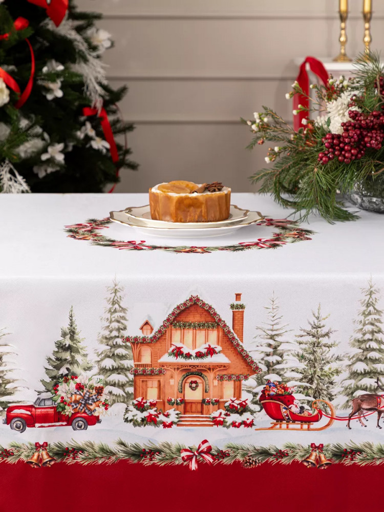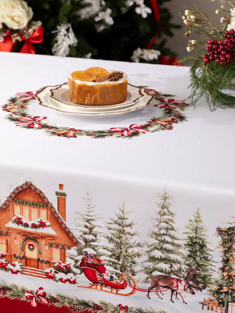 Скатерть новогодняя из габардина — идеальный выбор для праздников! Плотная ткань примечательна прочностью и долговечностью. Износостойкий габардин не только прост в уходе: он почти не мнется и долго держит форму и рисунок. Скатерть из габардина также устойчива к скорому выцветанию. Благодаря удобному размеру (145 × 220 см) изделие подойдет на прямоугольный стол. Красивая новогодняя скатерть может быть использована для повседневной трапезы, праздничного ужина или тематической фотосессии. Она надолго украсит обеденный стол.Тканевая скатерть эстетично вольется в антураж вашей кухни или столовой благодаря оформлению. Декоративная скатерть подарит ощущение домашнего уюта: праздничный рисунок заснеженного города выглядит особенно вдохновляюще, а сани с оленями и деревья красиво дополняют светло-серую скатерть.