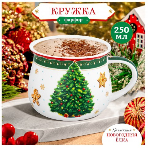 Кружка на ножке Elan Gallery выполнена из фарфора нового поколения new bone china. Благодаря современным технологиям он не уступает другим видам фарфора в прочности, но при этом экологичнее в производстве. Дизайнерская коллекция посуды от бренда Elan Gallery украшена изображением пушистой ёлочки и узором из имбирных пряников и снежинок. Она создаст в вашем доме атмосферу волшебства и подарит праздничное настроение. Кружка точно вызовет восхищение у ваших близких или гостей!