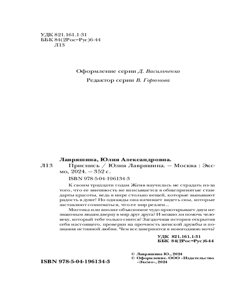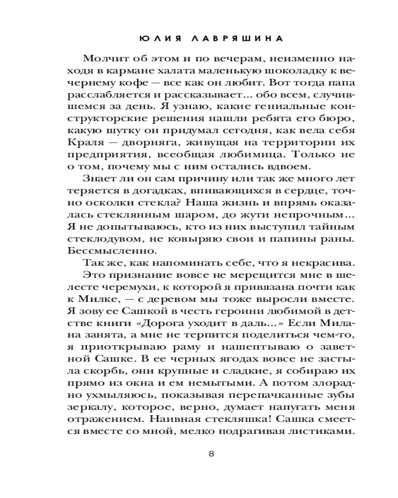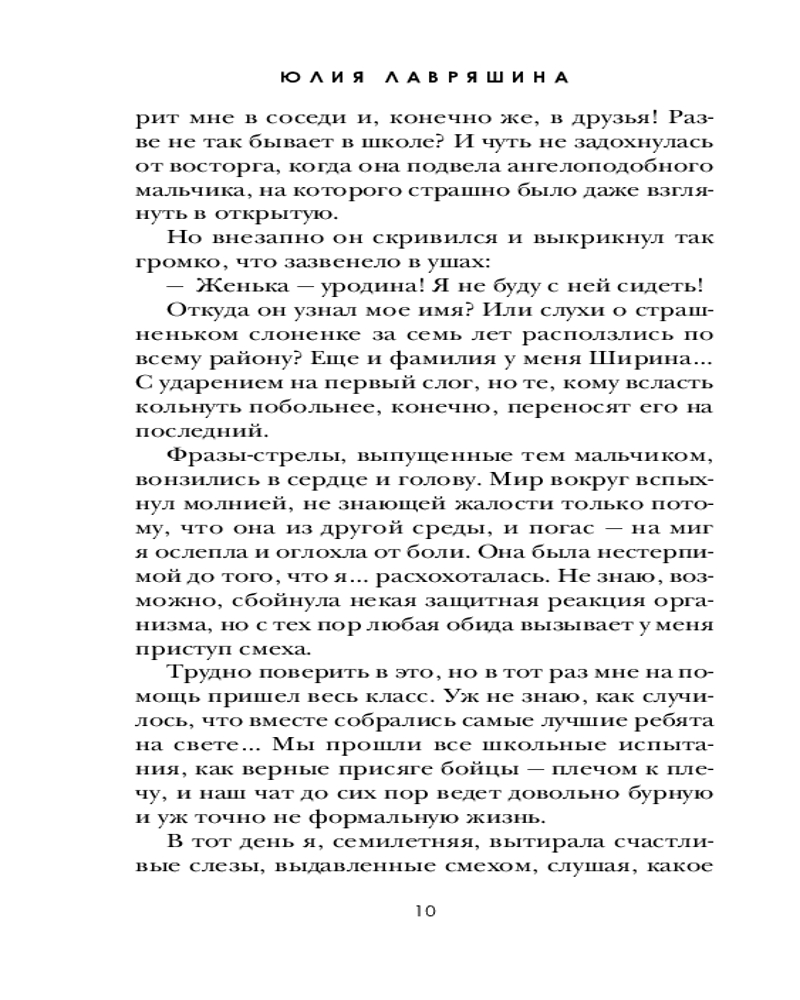 Серия: Девочки мои. Психологические романы Ю. Лавряшиной (обложка) Юлия Лавряшина — автор более 50 книг прозы для взрослых и детей, ряда пьес, киносценариев. Член Союза писателей России, лауреат Международной детской литературной премии им. В. П. Крапивина. Вместе с сыном, молодым композитором Евгением Лавряшиным, пишет песни и мюзиклы. Отличительными чертами ее прозы являются напряженный сюжет и психологическая глубина. |