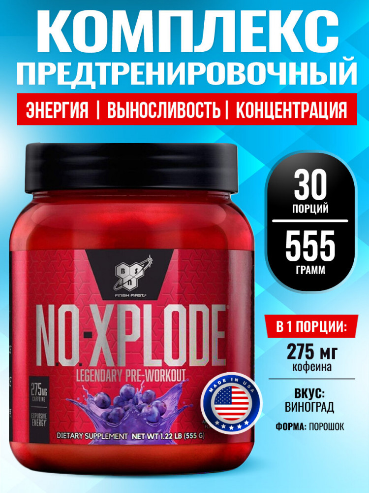 NO-Xplode 3.0 — новая формула предтренировочного комплекса от компании BSN. В отличие от предыдущей версии, продукт отличается более высокой концентрацией активных компонентов при уменьшенном объеме порции, характеризуется улучшенным действием на фокусировку и концентрацию, но позволяет избежать гиперстимуляции ЦНС и тремора. Благодаря специальному газированию порошковой смеси повышается скорость усвоения BSN NO-Xplode 3.3, и он начинает работать спустя 30-40 минут после попадания в организм. NO-Xplode 3.0 рекомендуется спортсменам, которые хотят повысить интенсивность тренировок и побить собственные спортивные рекорды. Он обеспечит идеальное сочетание физической энергии, выносливости, мышечной силы и максимальной концентрации, что позволит повысить производительность каждой тренировки.