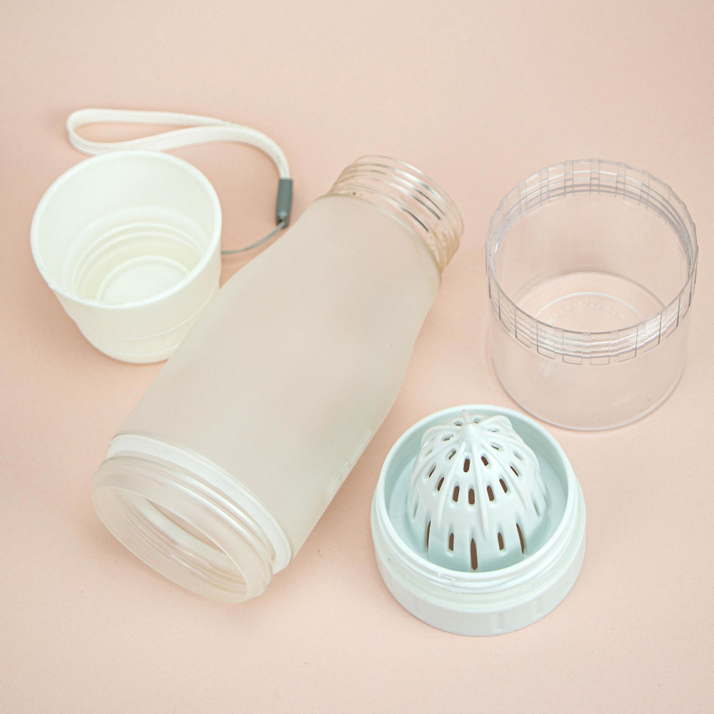 Необычная спортивная бутылка для воды позволит Вам в любых условиях без труда приготовить лимонад. Аксессуар сочетает в себе сразу два предмета: это удобная ручная соковыжималка для цитрусовых и бутылочка для лимонной воды. Мини сокодавка поможет отжимать сок из лимона, апельсина, лайма и прочих фруктов, используйте ее по своему вкусу. Для того, чтобы получить напиток, не нужно прилагать много усилий. Фреш бутылка с насадкой для вкуса просто переворачивается, цитрус разрезается пополам, слегка выжимает и заливается водой. Для аромата вы можете добавить мяту или другие специи. После чего просто взболтайте портативный шейкер-лимонадник и наслаждайтесь напитком. |